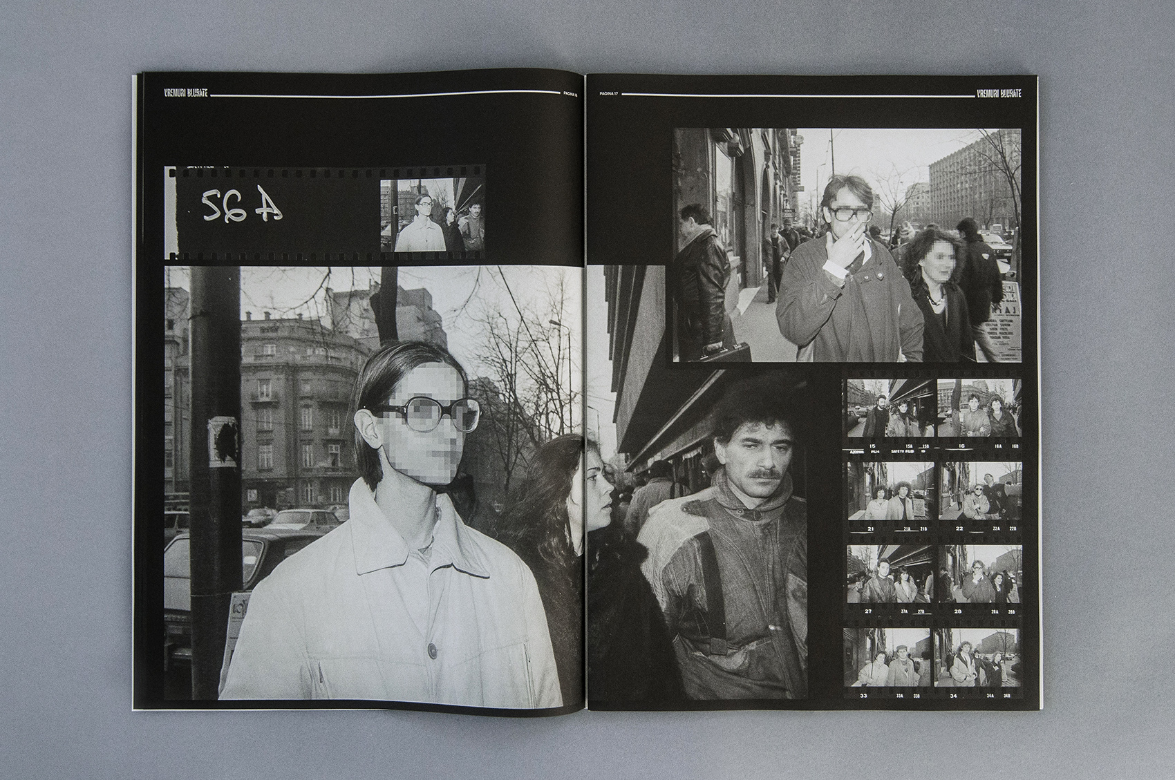 I worked with Romanian photographer and film maker Dragoș Lumpan on his project about street photography - Blurred Times - started thirty years ago as an experiment, in full freedom boom after the Revolution in ‘89. In the making of the exhibition he got stuck in the GDPR restrictions and decided to anonymize all the main characters in the photos. So we applied the filter of the new mentality, turning hundreds of subjects into faceless people, trying to keep a few of their identity features and not loose them completely behind pixels and black bars. The exhibition hosted in Bucharest, Timișoara and Piscu(Ro), was accompanied by a 100 pages catalogue split in two parts, Then and Now, making a point about the blurred line between the right for privacy and artistic expression. A subject of continous debate, although legally, street photography is considered artistic.